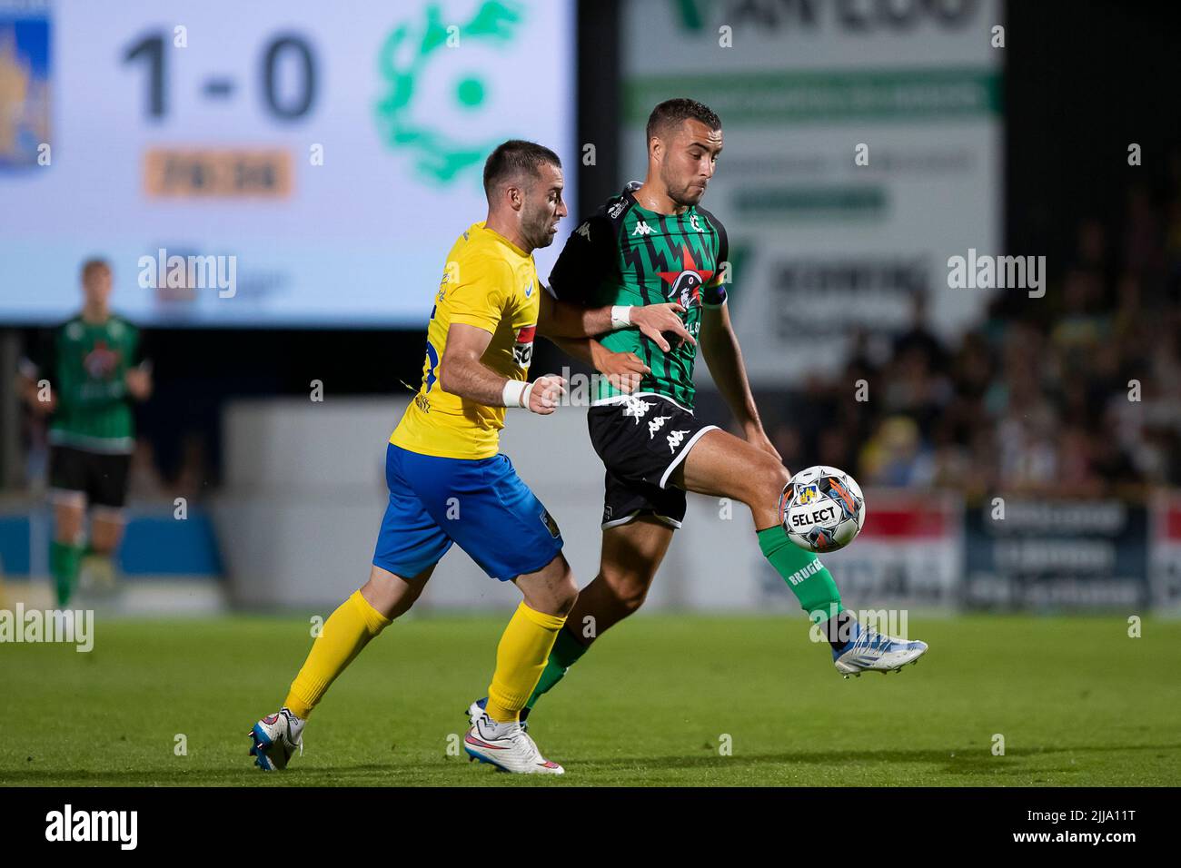 Westerlo Belgium 24 July 2022 Westerlo S Tuur Dierckx And Cercle S Charles Vanhoutte Pictured In Action During A Soccer Match Between Kvc Westerlo And Cercle Brugge Sunday 24 July 2022 In Westerlo On